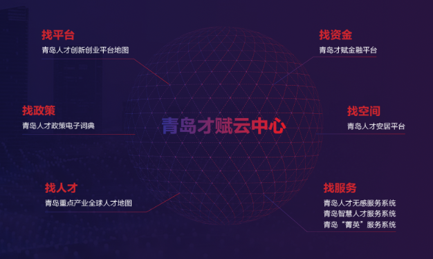 以青岛人才创新创业平台地图系统为基础,打造青岛“才赋云”平台系统。“才赋云”由8个功能性人才工作信息化系统和数据底仓构成,分别是已经建成运营的青岛人才创新创业平台地图、青岛人才政策电子词典、青岛重点产业(汽车)全球人才地图、青岛才赋金融平台、青岛“菁英卡”服务系统、智慧人才服务系统,以及正在建设的人才安居平台、人才无感服务系统,分别承载人才发展亟需的平台、政策、猎聘、资金、技术、项目、服务等赋能资源,为人才发展提供数字智能化解决方案与配套增值服务,推动我市人才工作数字化转型和人才发展数字化赋能。